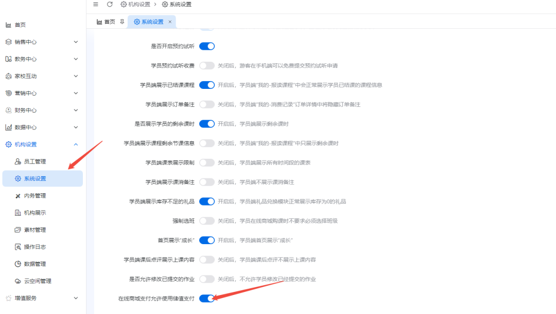 四,新增学员端是否显示课消记录与购买详情