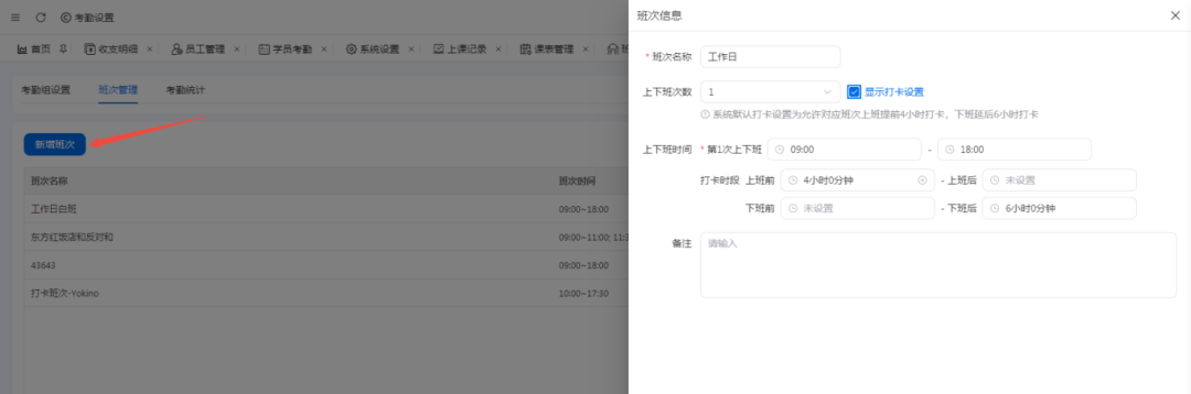 1.新增考勤班次,设置好每日的具体可考勤时间