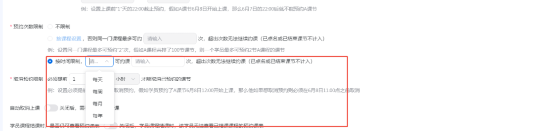 一,约课规则新增单位时间内次数限制